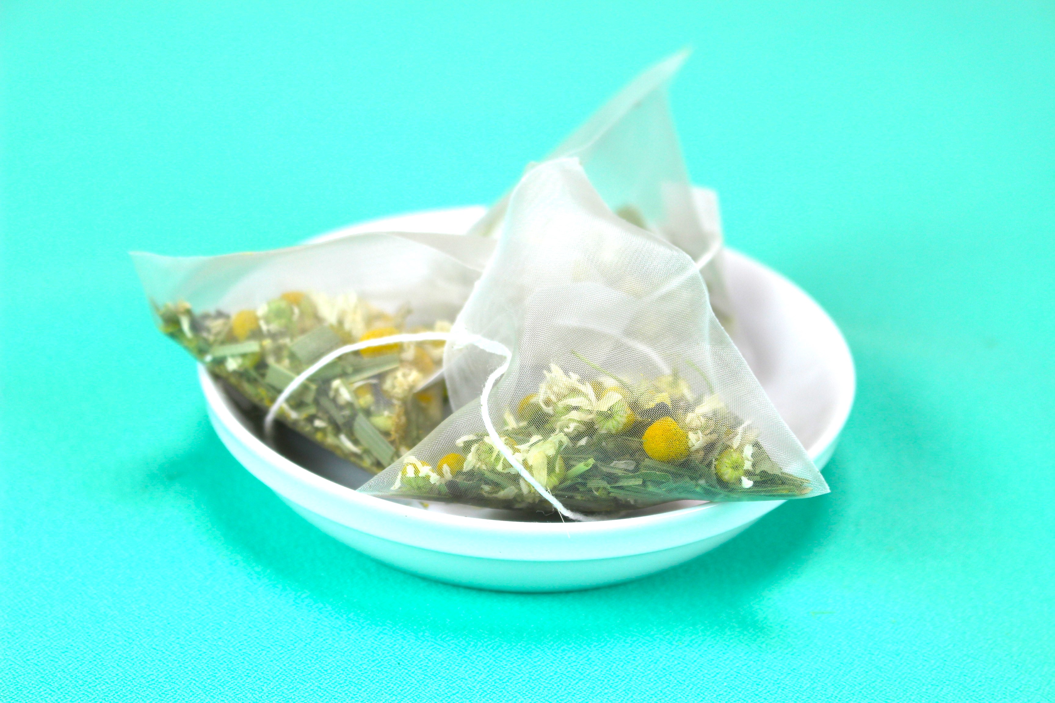 お腹をいたわり、リフレッシュしたいときのハーブティー レモングラスをティーバッグに詰めました。